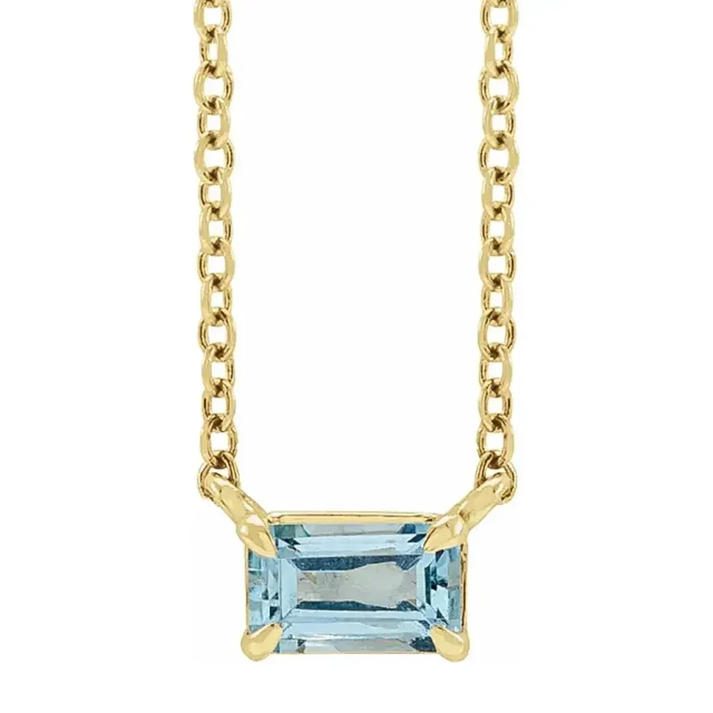 The aquamarine stone has long been associated with clarity and tranquility. Wear your pendant to symbolize these attributes in style.