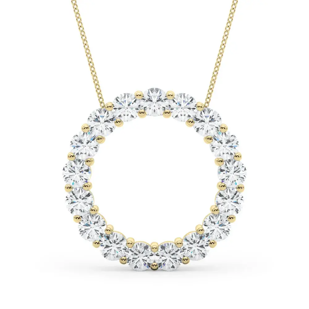 This spectacular open circle pendant is formed by over 2 carats of lab-grown round brilliant diamonds.